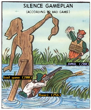 A borrowed Boblemoche (108-65) proved their leading scorer, ahead of Undercut (101-66), Ricko (99-65), Rendered (65-64), and Missa (52-72).