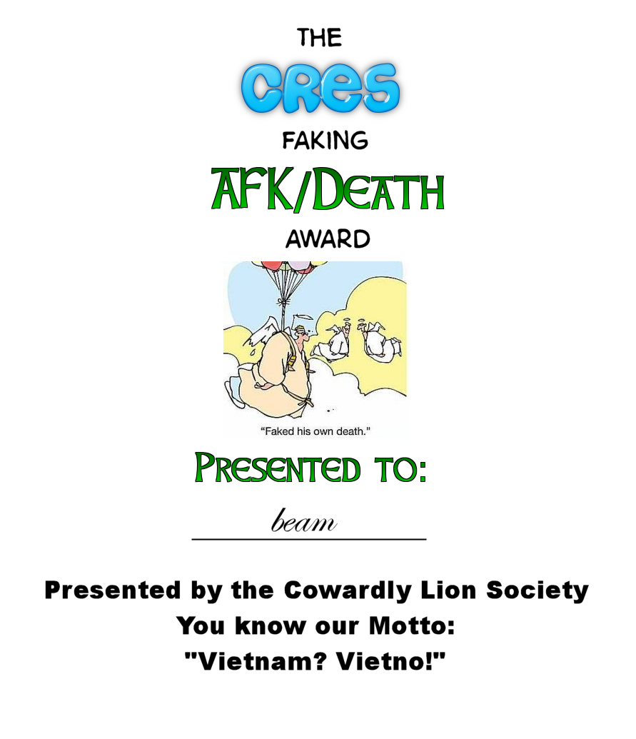 NOT: beam, for faking afk and refusing to play. Worthless.