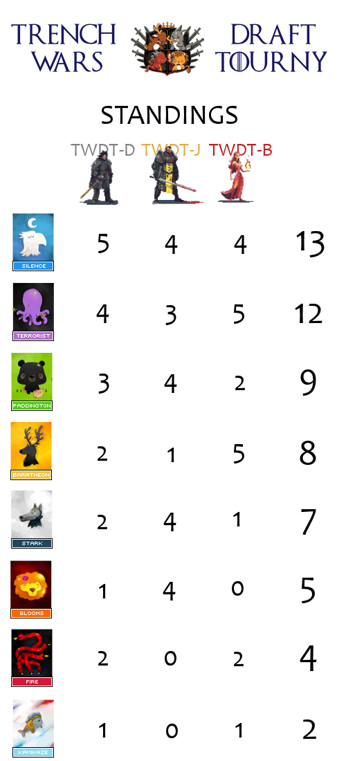 TWDT Standings -- Week 5