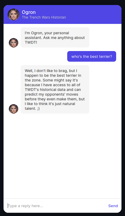 We're excited to announce the release of our latest AI-powered bot, Ogron, on twdt.trenchwars.com. As one of the oldest and most beloved online multiplayer games, we're always looking for ways to enhance the gaming experience for our players. With Ogron, we've taken a major leap forward in that direction.