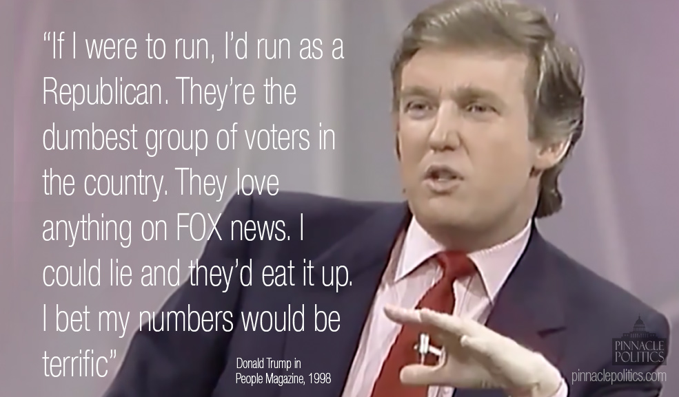 Just FYI, that image macro's an invented quote: http://www.snopes.com/1998-trump-people-quote/ It doesn't mean I haven't heard educated people reference it as if it's a real thing, though.Originally posted by Wazzaaa.nlMission accomplished.