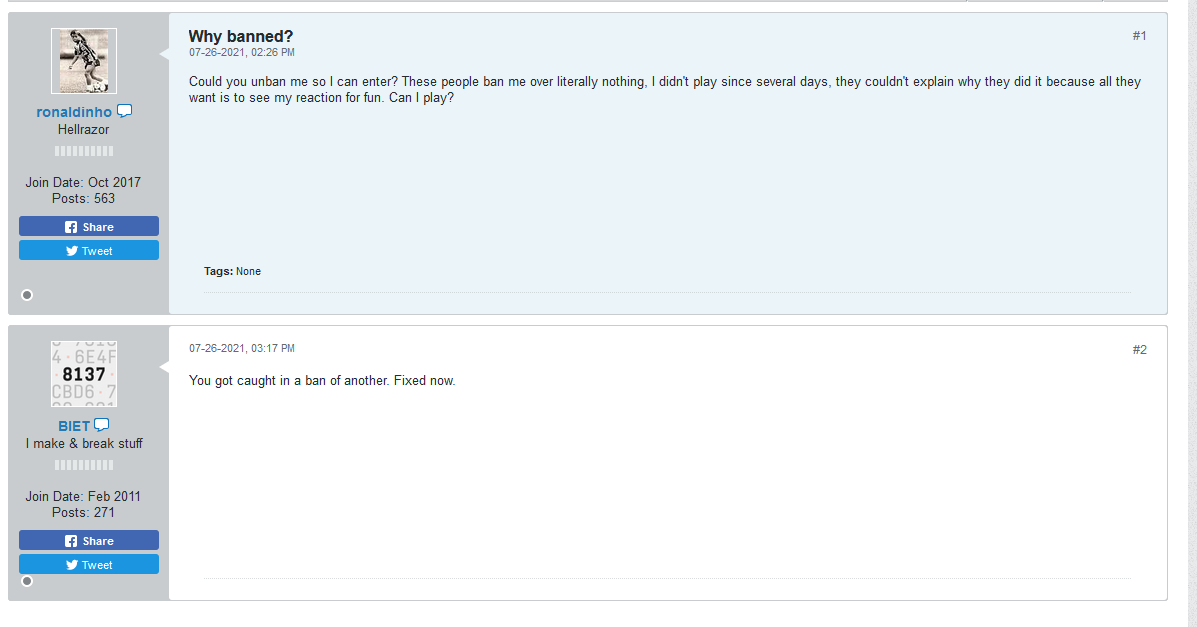 WHY IS THERE NEVER ANY EXPLANATION FOR THE BANS, WHEN YOU CONTEST THE BAN YOU GET NO RESPONSES. WHEN YOU ASK WHY? ALL YOU GET IS SILENCE, NO REASON. REPORTING STAFF ABUSE GETS YOU BANNED