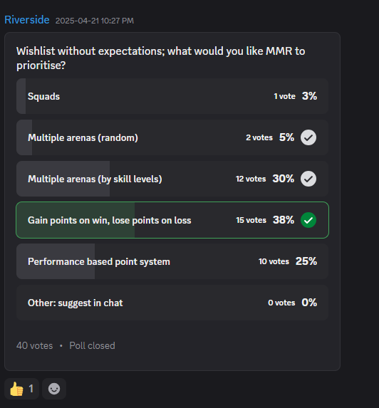 This wasn’t the first time I experienced this kind of authoritarian behavior. For months, I defended him. I encouraged players to give feedback constructively. I supported his request to move all discussion to the official Discord. I even created a thread with a community poll — only for him to delete the poll, lock the thread, and ban new users from joining the Discord for 24 hours because two people left mildly negative comments.