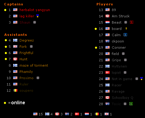 6) See who's online just by looking at a squads roster- a tick symbol/circle or something similar could represent they are online now.