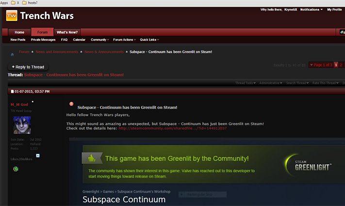 We'll be moving users and forum structure over to http://forum.subspace.tw/ soon enough.