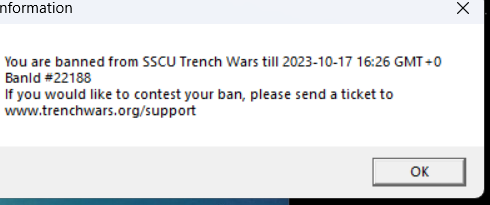 You're welcome to submit a ticket on https://trenchwars.org/support or send an email to twcomplaints @ gmail.com