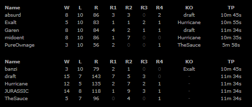 As much as your scores often frustrate me in mmr jr sauce you don't deserve a ban for it. How long is your ban for? I can't in good conscience stand by while the zone kicks newer players to the curb if there is no reason. Did you do anything in specific for this to be based off of or..? What is going on. I saw jb was banned for dying out in 2 minutes too which is insanely fast but is possible to happen even when trying your hardest if the perfect storm hits. Spawns and strays can do this. I'm worried about the direction the zone is taking. Seems like bans are being lifted for abusers and people just wanting to play who happen to either have a bad game or who are less skilled are being selectively targeted. It isn't a good look for inclusivity to be excluding new people from competitive play.TWDT-J CHAMPION POWER 2018